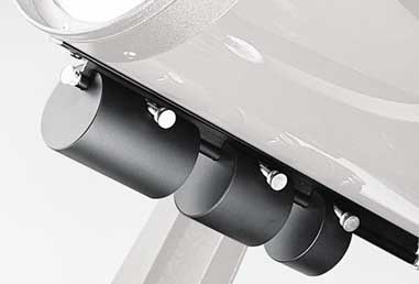 Laufgewichte und Gegengewichte Wenn schweres Zubehör wie eine CCD Kamera mit Flip Mirror System am Teleskop angebracht wird, muss das Übergewicht durch einen Laufgewichtssatz ausgeglichen werden. Im Lieferumfang ist die Laufschiene, die am Teleskop Tubus befestigt wird, und drei verschiedene Gewichte enthalten.